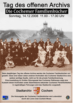 Seit 2002 öffnet das Stadtarchiv einmal jaährlich seine Tore für die interessierte Öffentlichkeit. Die Besucher erwartet jedes Jahr eine thematisch wechselde Ausstellung im Großen Sitzungssaal mit Archivalien aus dem Stadtarchiv. Im Rahmen von stündlich angebotenen Führungen durch das Stadtarchiv werden die Bestände vorgestellt.